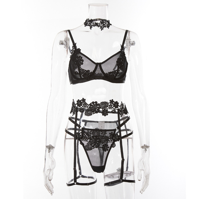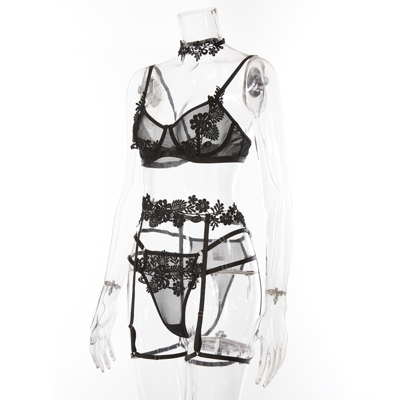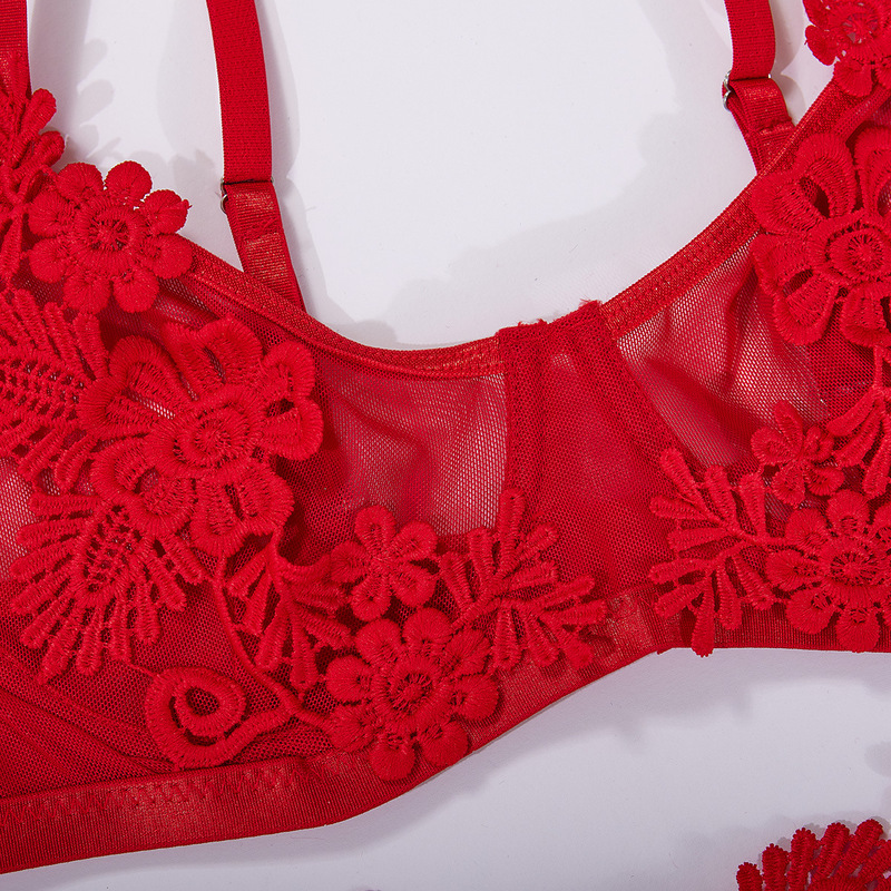 4. Empowering: The Mesh Stitching Embroidery Perspective BH & Trussesæt tilføjer et sexet og bemyndigende touch til enhver intim lejlighed. Det indviklede broderi og gennemsigtige mesh skaber et provokerende, men sofistikeret look, der helt sikkert vil få dig til at føle dig selvsikker og bemyndiget.