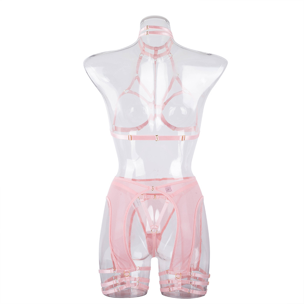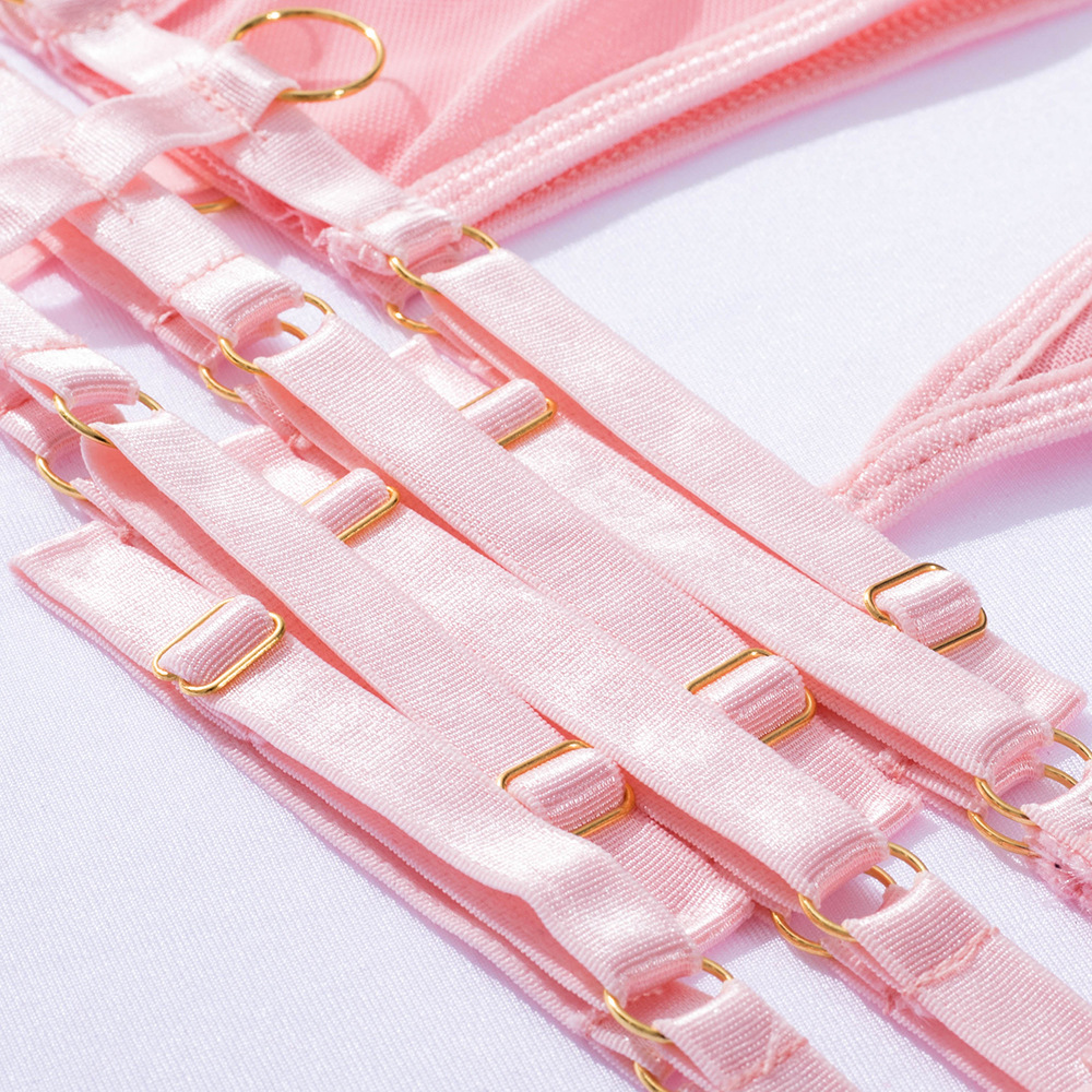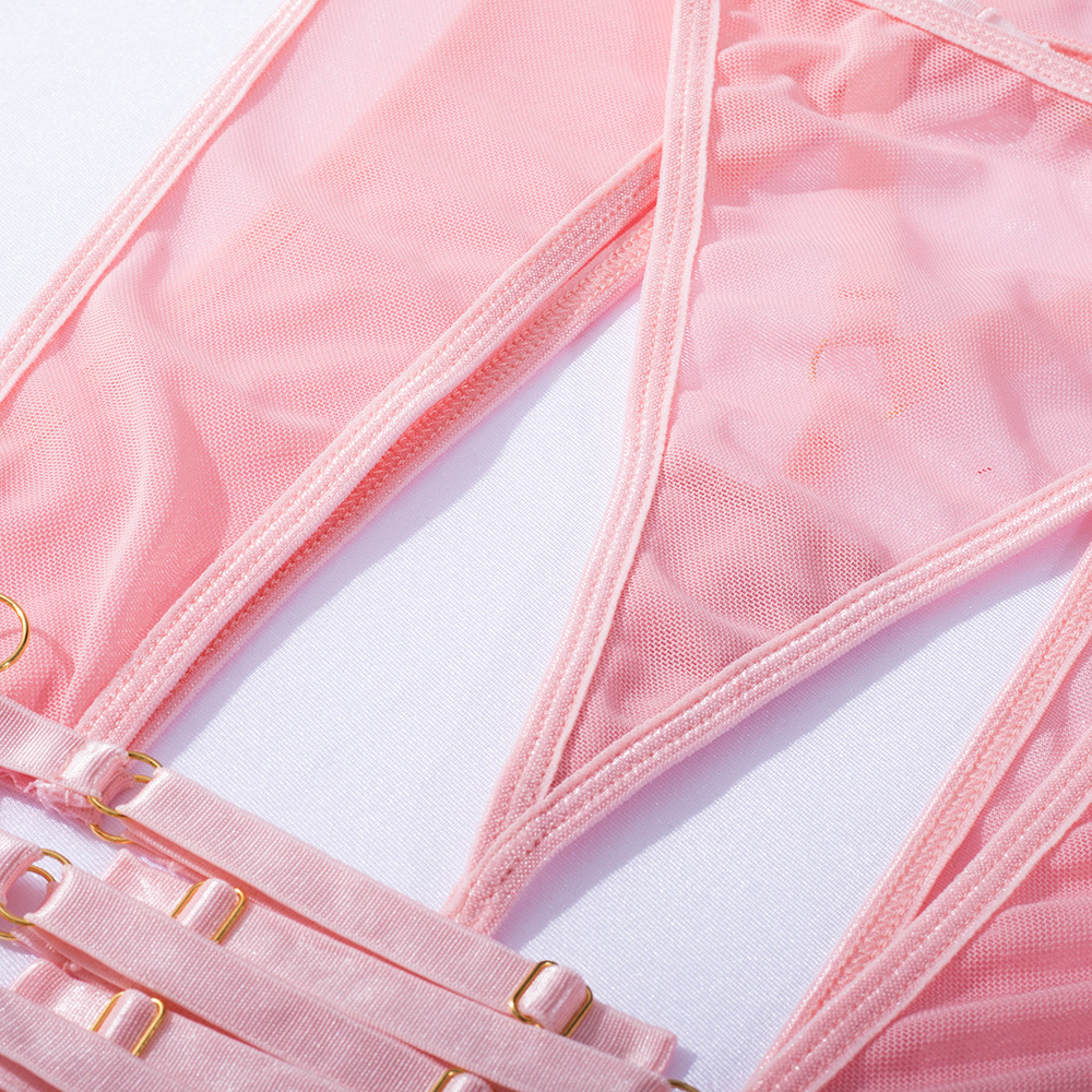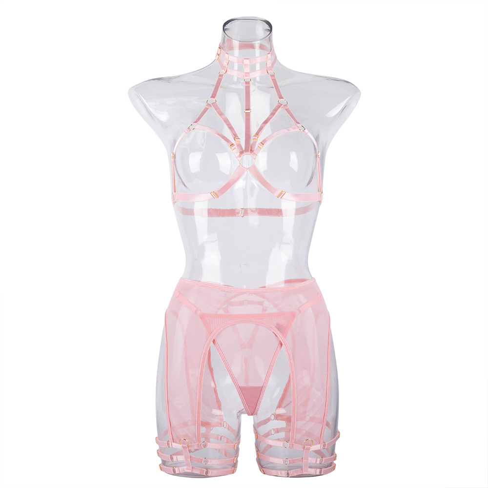 Abraza lo atrevido y hermoso con nuestro conjunto de lencería Sensual Hollow Bra en rosa claro, que presenta un diseño de disfraz erótico y cuello halter. Este conjunto no es sólo un producto; es una declaración de estilo que a sus clientes les encantará. No esperes. Contáctenos hoy para realizar su pedido o hacer cualquier pregunta. ¡Redefinamos juntos la moda de la lencería!