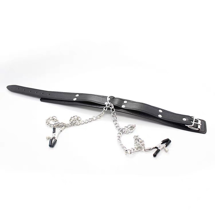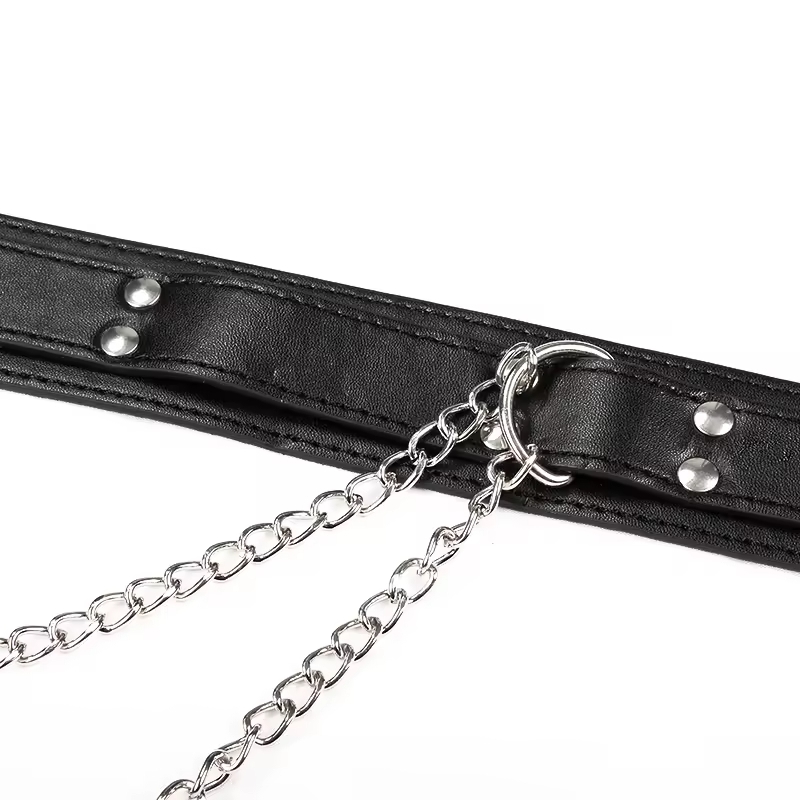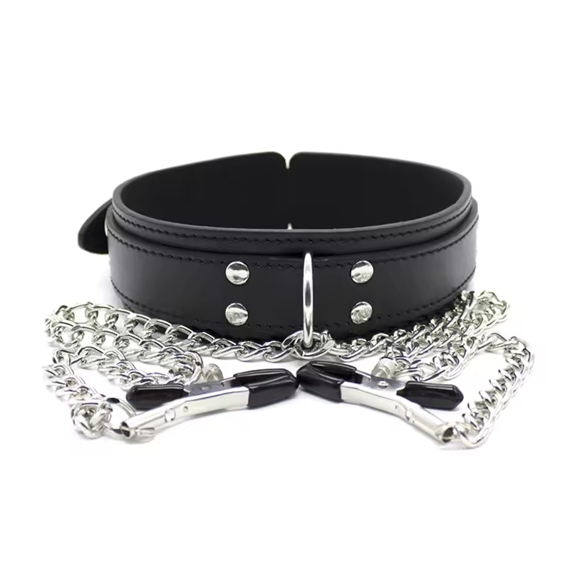 Yksiosainen muotoilu: Tämä SM-kaulus ja nännipidikesarja tarjoaa saumattoman yksiosaisen muotoilun, joka varmistaa yhtenäisen ja tehokkaan esteettisen ilmeen. Kauluksen integrointi nännipidikkeisiin metalliketjun kautta tarjoaa katkeamattoman hallinnan ja tuntemuksen, joten se on täydellinen valinta niille, jotka syleilevät naisten alistuva kaulus rooli.