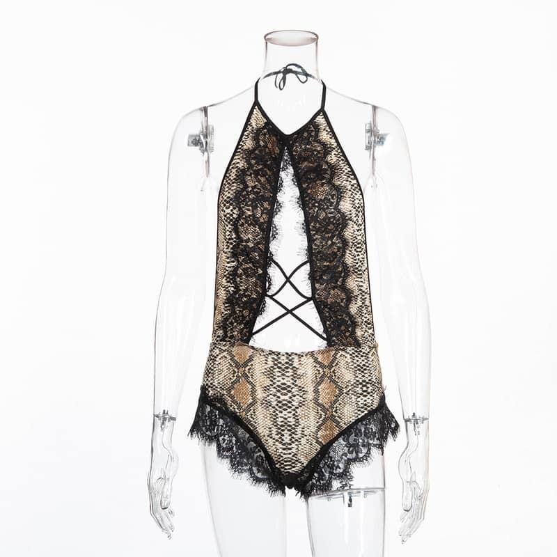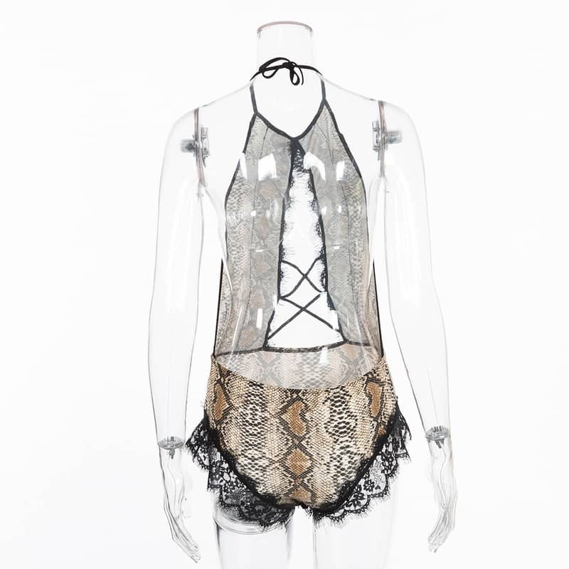 Enfilez le costume en peluche à coupe ouverte Snake Deep-v et devenez des "femmes fatales". Motif de serpent, tissu respirant de haute qualité, décoration de cils en dentelle noire, conception de poitrine ouverte.