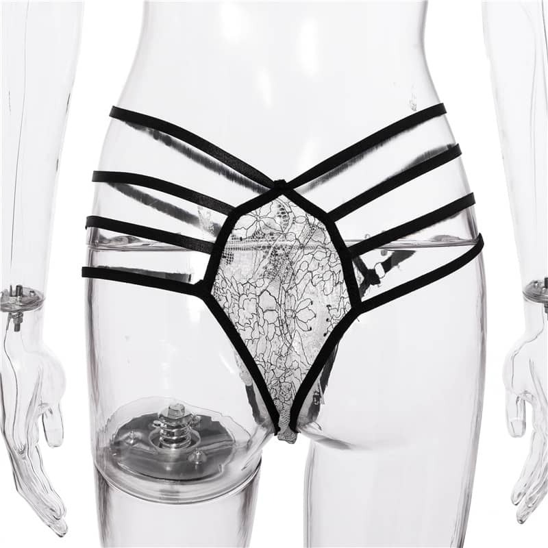 Design de roupas íntimas de estilo aberto, extremamente sexy. As partes importantes são decoradas com renda branca e 4 pares de cintos finos são usados como cinto, o que é muito sexy.