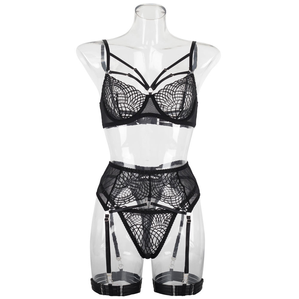 Elegant spetsarbete: BH:n och trosorna är prydda med premium spets, erbjuder en lyxig känsla och intrikat visuellt tilltalande. De exakta mönstren och delikata bågade kanterna på detta spetsunderkläder och bh-set accentuera skönhet och sofistikering.